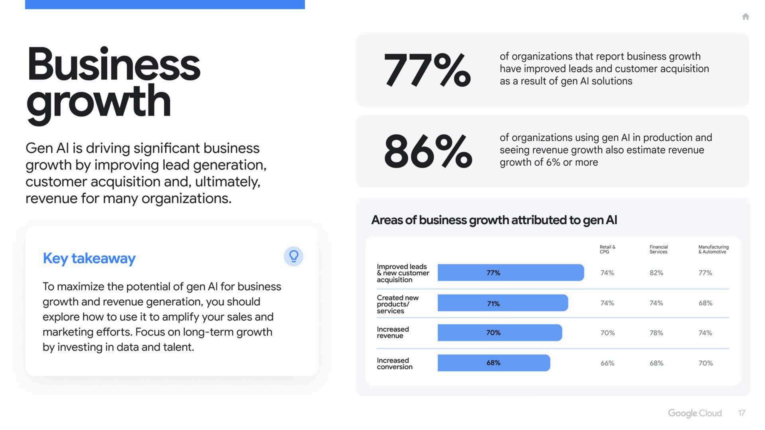 63%的企业明确表示,生成式AI已直接推动业务增长,将其视为营收与规模扩张的”放大器”而不仅是降本工具。
