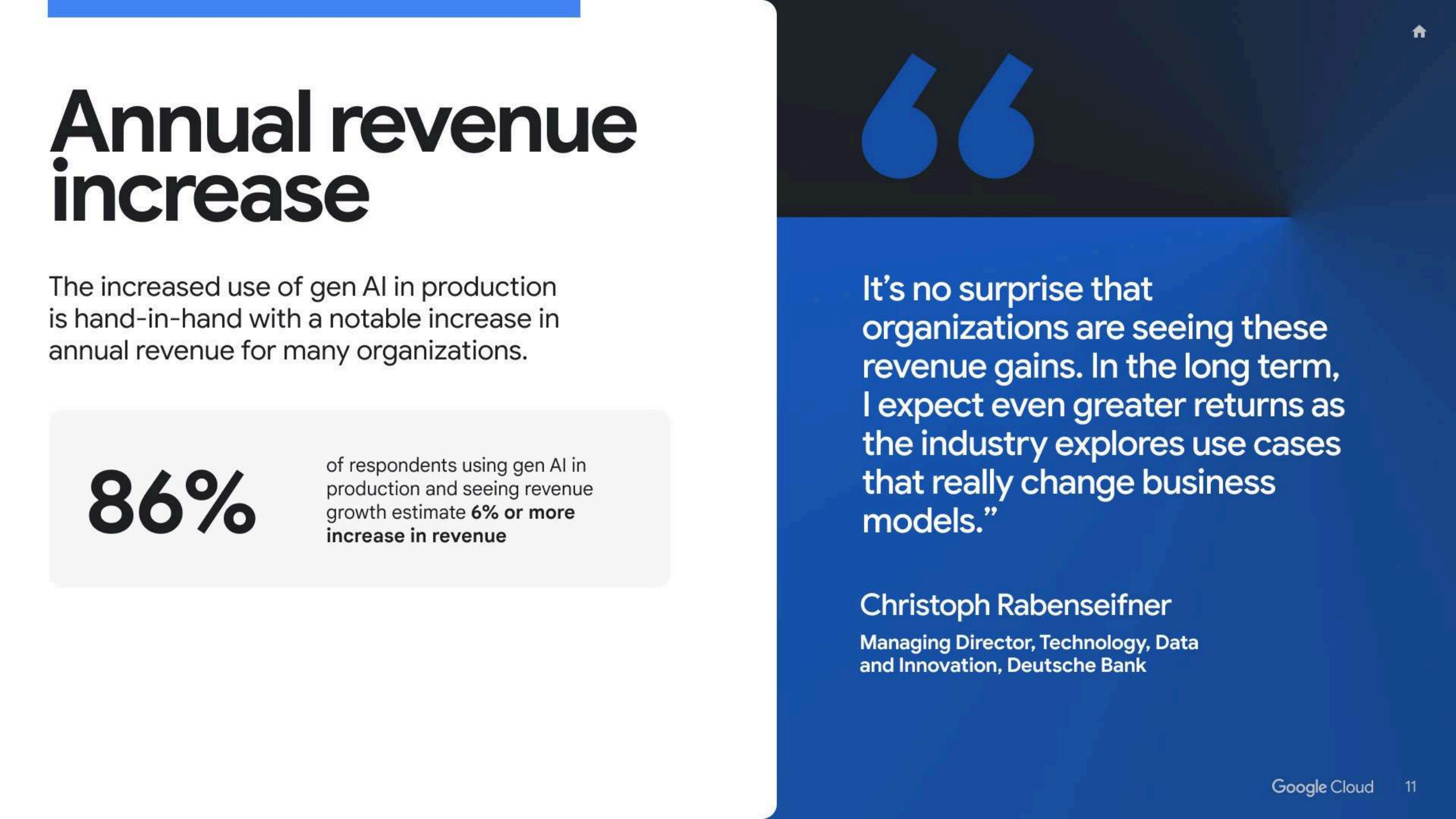 趋势上看,这份报告勾勒出一条相对清晰的演进轨迹:从单点提效,到营收放大,再到行业级商业模式重写。随着86%的领军企业计划将未来至少一半AI预算投向生成式AI,加之C层联席”赞助”与专门团队的普及,资本、组织与技术路径正在互相强化。若当前约6%的平均收入增幅继续在更广范围复利,生成式AI极有可能在下一个技术周期中,从”成本项”转化为企业资产负债表上的核心增长资产,而真正的差异,将来自谁最先把它深植进决策机制与业务结构之中。