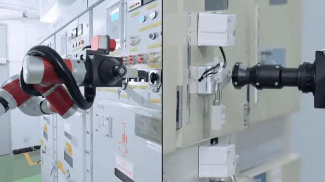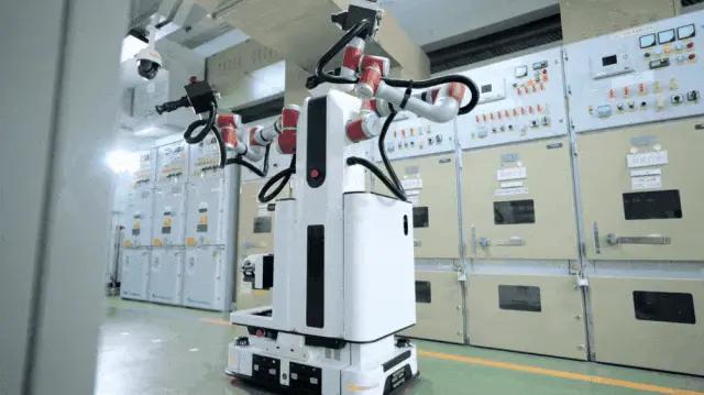 在位于南方电网广东广州供电局的一座 220 千伏变电站高压室内,“钧仪”正在进行高危环境下的巡检操作,通过高精度的双臂协作多线程并行作业,完成开关柜巡检、按钮操作、手柄切换等复杂任务,实现无人化巡检操作。