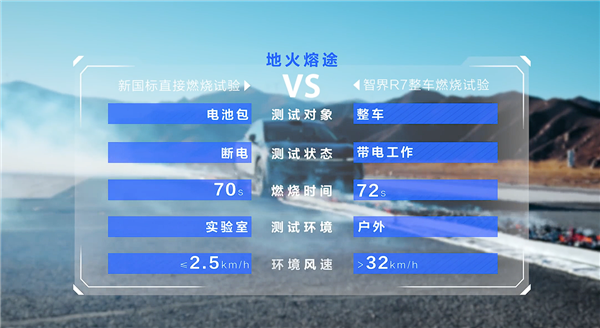 这条人工制造的火路长100m,宽0.8m,里面摆放上木炭,并用汽油引燃,表面温度达到817℃,最终用时超过新国标要求,电池包未起火未爆炸,车辆可正常启动。