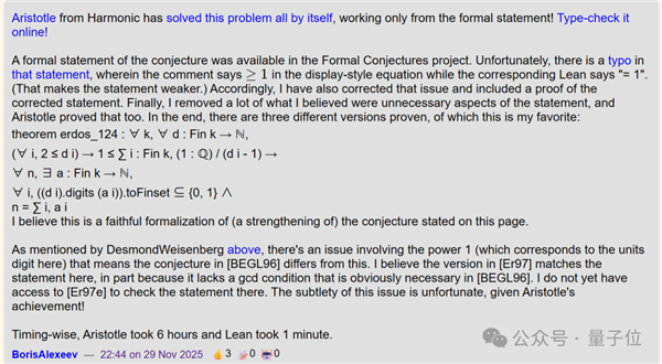 原来Harmonic模型所证明的并非原版Erd?s问题#124,而是一个简易版本。
