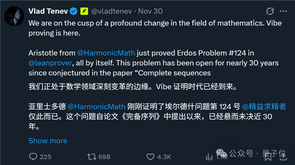 而参考编程领域的Vibe Coding概念(最早由AI大神卡帕西提出),Harmonic联创兼CEO激动表示: