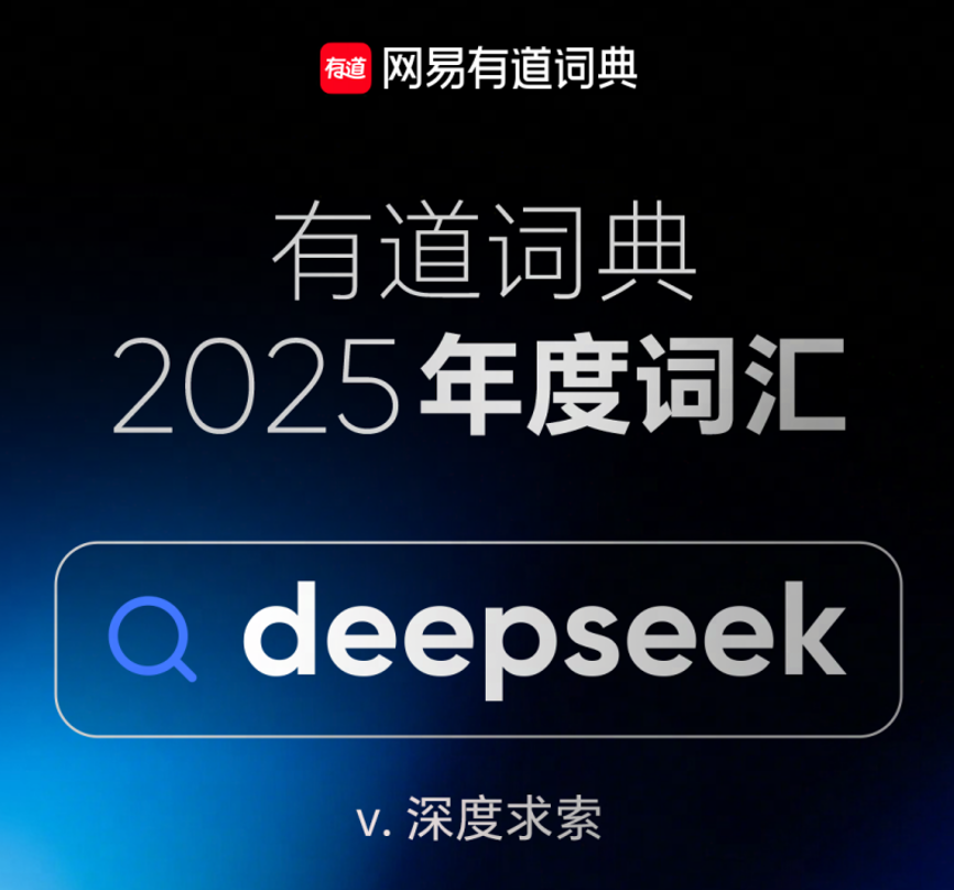 12月1日,网易有道词典年度词汇正式发布,“deepseek”凭借高达8,672,940次的全年搜索量强势夺冠,成为最受用户关注的词汇。