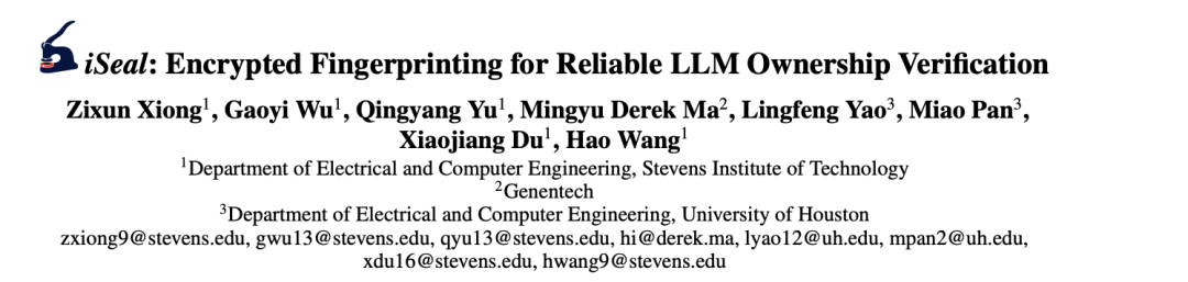论文标题:iSeal: Encrypted Fingerprinting for Reliable LLM Ownership Verification