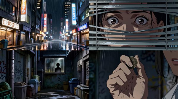 浦泽直树漫画风格,四宫格漫画。