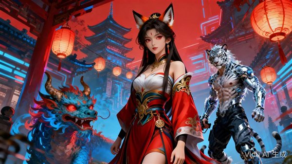 但到了国产 AI这里,画风就完全不一样了,我们还是用同样的图片和 Prompt: