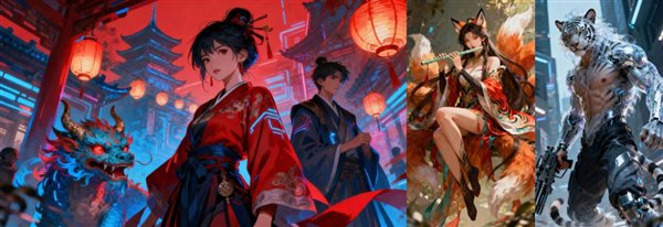 这一次,为了测试主体的一致性,我们先生成一张主图,再生成 2 个不同画风的主角图来做替换。