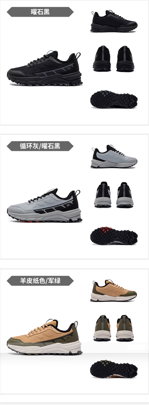 多革料拼接鞋面,可应对多变天气。