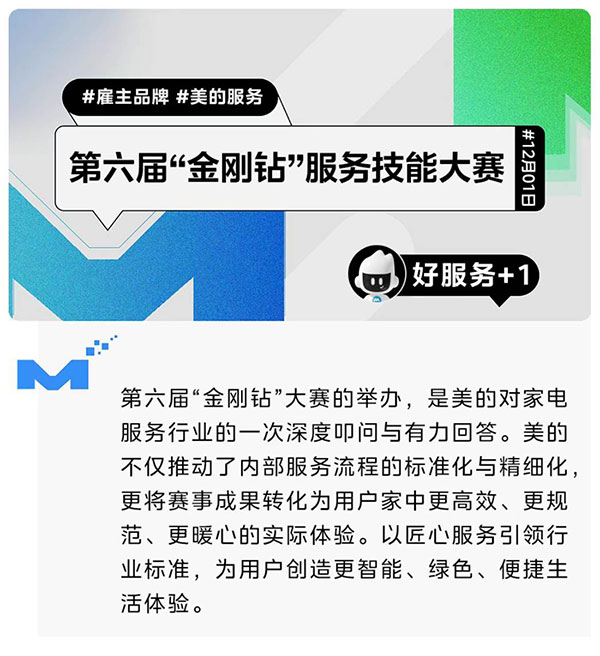 一场大赛的落幕,正是新一轮服务升级的开始。以匠心服务引领行业标准,为用户创造更智能、绿色、便捷生活体验。这场美的与用户共同开启的服务新篇章,值得期待。