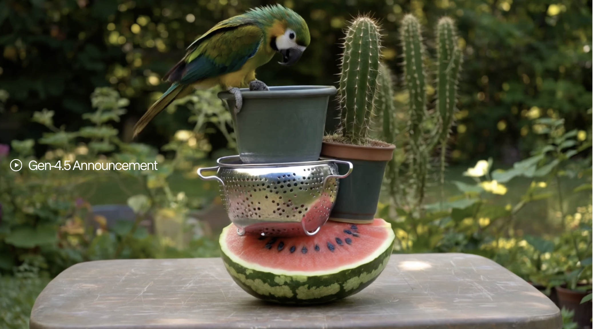 但AI生成的“真实”往往暗藏瑕疵。例如,在官方给出的案例中,一只鹦鹉站在西瓜、仙人掌、花盆、菜篮组成的“支架”上,随着鹦鹉的移动,西瓜像不倒翁一样晃动,而鹦鹉时而振翅时而停留,无论是动态还是物理规律来看都很真实。