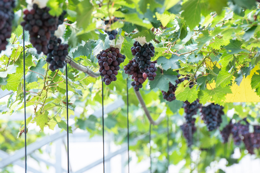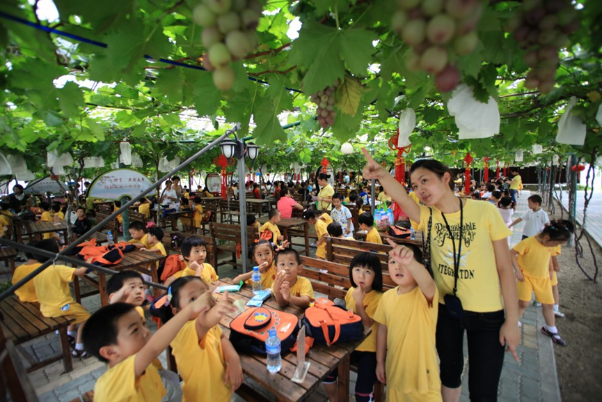 沪郊嘉定马陆镇的葡萄园里,一串串晶莹剔透的葡萄挂满枝头。