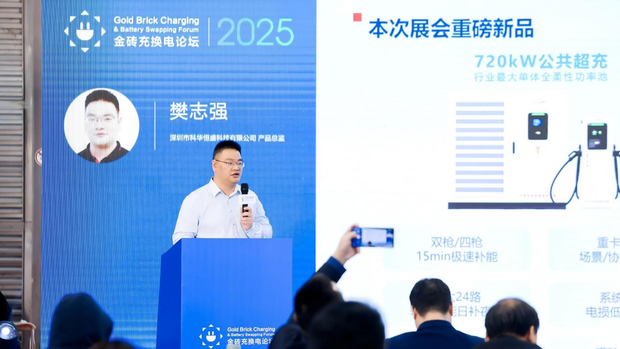大会同期论坛中,深圳科华产品总监樊志强出席并发表了《极质兆瓦超充,创造可持续价值》主题演讲。近年来,国家陆续出台3C认证与能效等级要求,推动行业竞争焦点向技术创新、产品能效与安全转移,我国充电桩行业正面临从粗放式发展转向高质量发展的关键转折点。