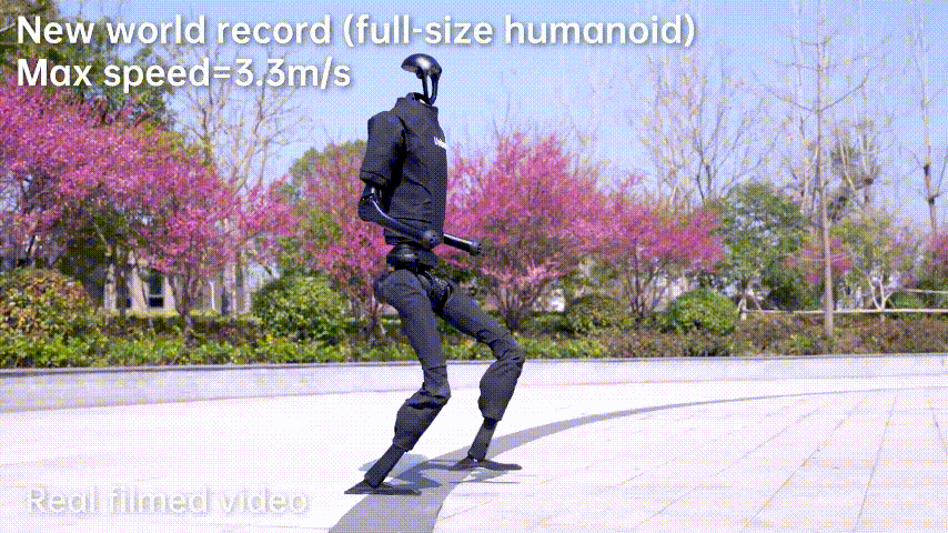 要说灵活性,爱豆更是吊车尾水平,出场就摔咱们先不说了,其标称的行走速度只有6 km/h,还磕磕绊绊的样子,而宇树H1的跑步速度,可以达到11.7公里/小时,且非常流畅问题,要知道,H1已经是两年前面世的产品了。