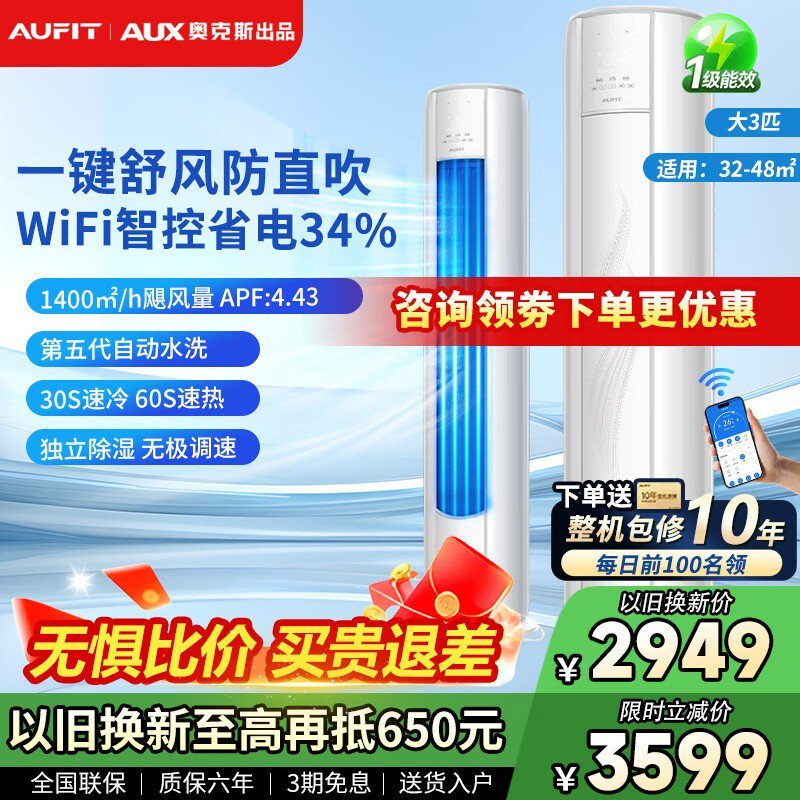 奥克斯大3匹柜机空调热卖