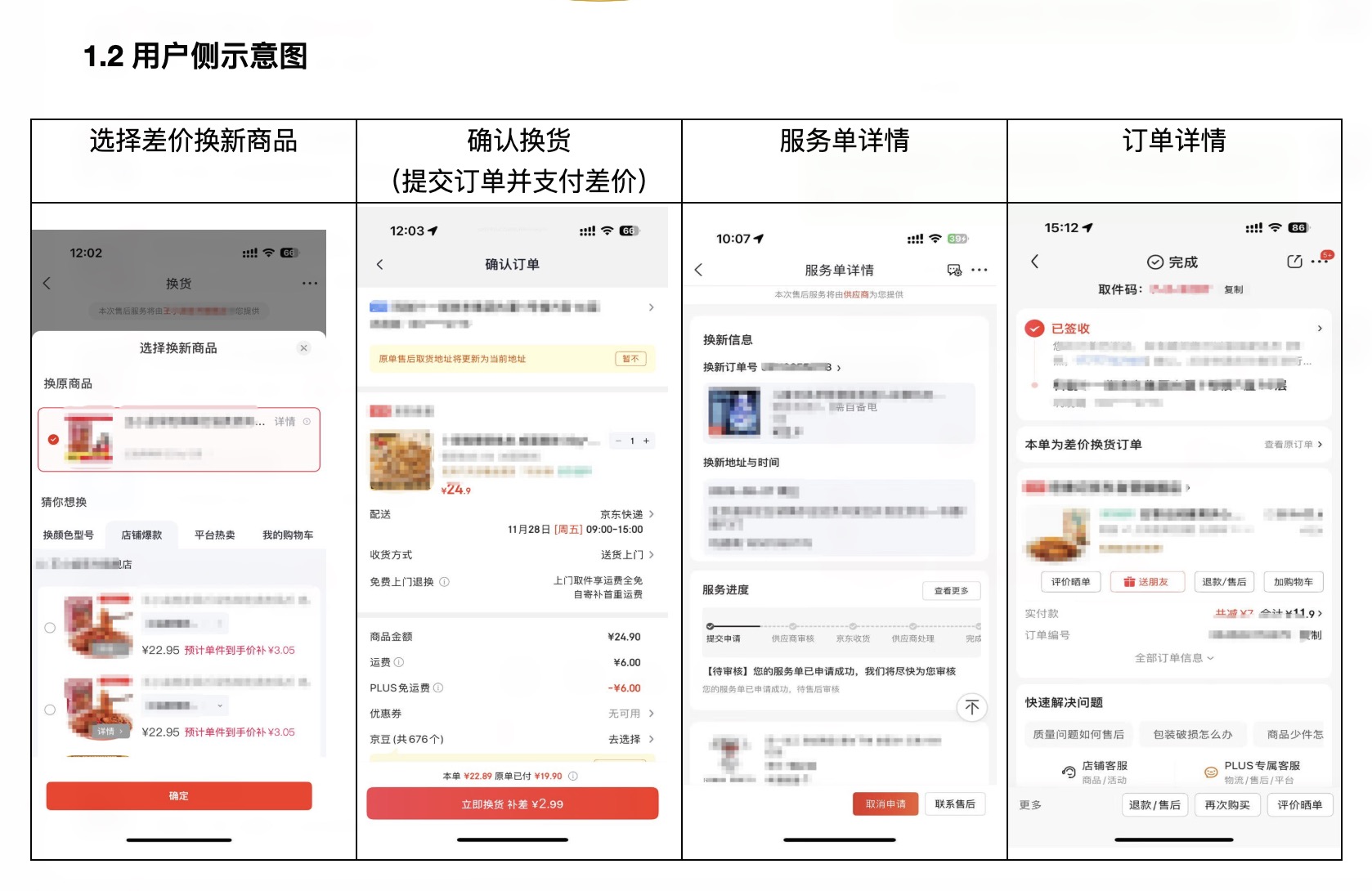 从服务流程上来看,整体可以分为原单退货退款、转移支付、新订单生产三个环节。在换货环节,当消费者选择差价换新商品后,可以换原商品也可以换平台内的其他商品;确认要换的商品后,消费者需要提交订单和支付差价。(差价=原订单可转移的实付金额-新订单提交时的应付金额,结果为正数则会为用户退差,结果为负数则需要用户补差。)消费者后续可以在京东App内查看换新订单的订单号、服务进度等。