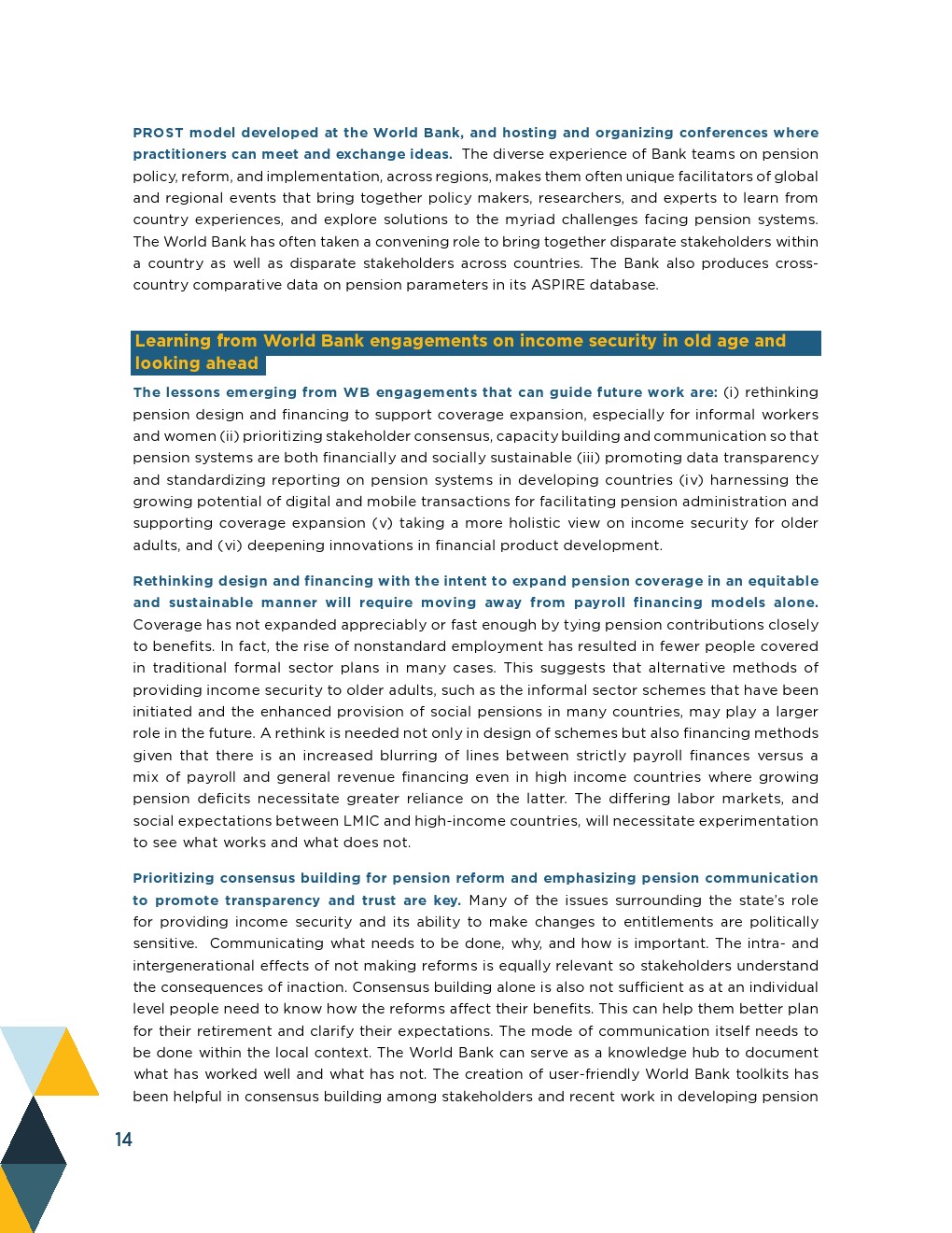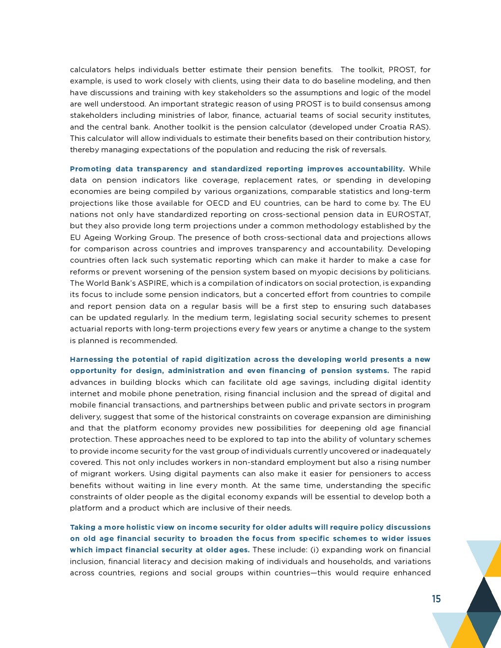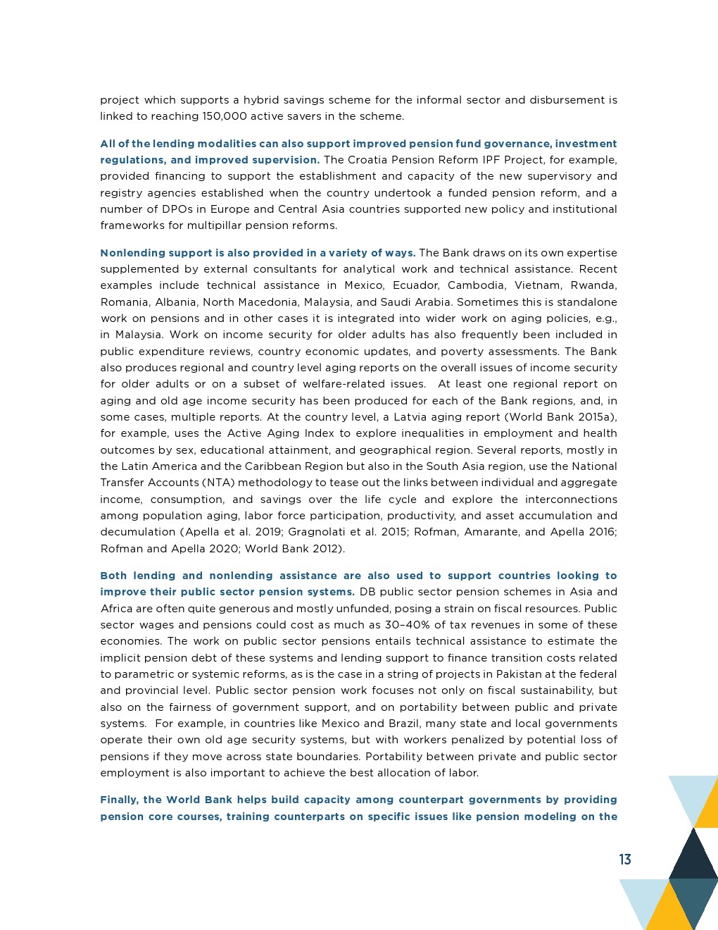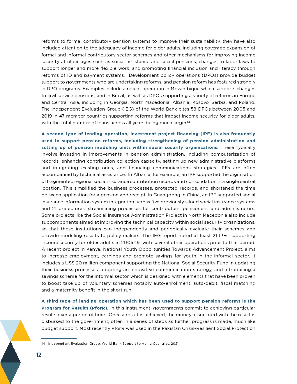 投资项目融资(IPF)也经常用于支持养老金改革,包括加强养老金管理和在社会保障组织内设立养老金示范单位。
