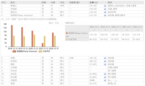 根据2024年财报显示,张园园去年的薪酬为113.3万元,较2023年的29.3万元上涨了84万元,涨幅约286.7%。
