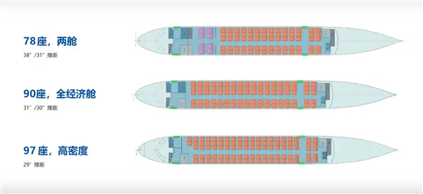 C909座级78-97座,航程2225—3700公里,最大起飞重量43500千克,具有适应性、舒适性、经济性、共通性、系列化等特性。
