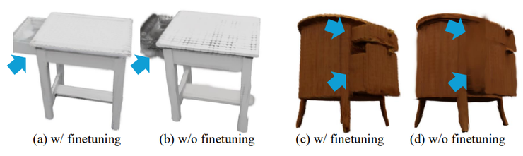 为此,作者提出了关节感知的外观解码微调策略。具体做法是,在每个训练物体的关节运动范围内均匀采样若干状态,并对每个状态渲染多视角图像,然后提取其特征与体素一一对应,为模型提供“不同关节状态下真实可见外观”的参考。