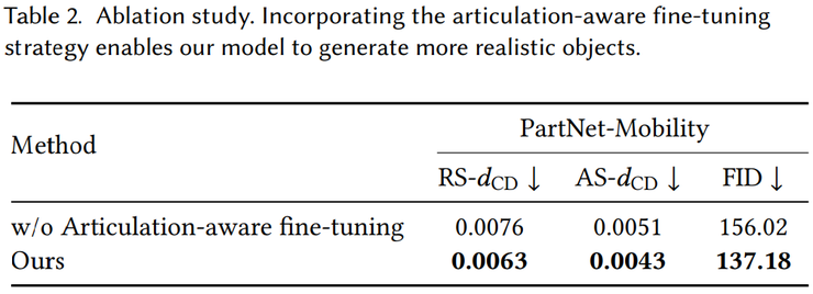 方法本身也具有很强的泛化能力和扩展空间。结构化潜空间、可动结构扩散模型和关节感知外观解码并不依赖特定的物体品类,因此不仅适用于家具,还可以推广到机械设备、工具、生物体的骨骼结构以及复杂的装配系统。