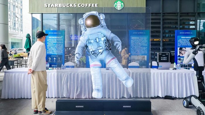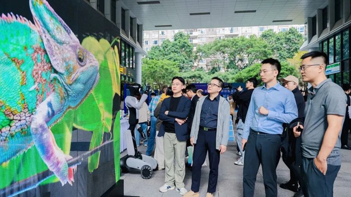 同期,在深圳广电金融中心外广场设立的“潮品展览街区”,美矽微展示了2台LED隐形广告机。屏体三边无框,独创三点快锁结构,数分钟即可完成大尺寸透明屏搭建;支持单台或多台无缝拼接,轻松适配各类商业及展示空间。裸眼AR与空间悬浮影像的视效快速营造出超强冲击力的裸眼体验,现场吸引大量观众,氛围热烈。