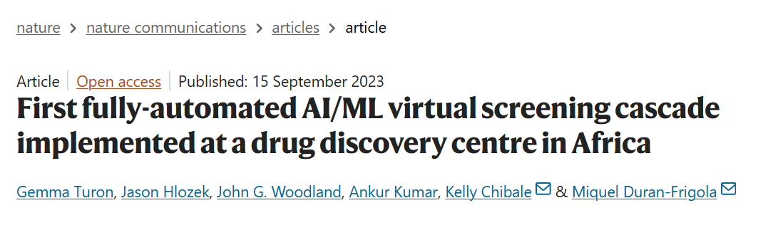 图 | 双方合作论文:非洲药物发现中心实施的首个全自动人工智能/机器学习(AI/ML)虚拟筛选级联(来源:Nature Communications)