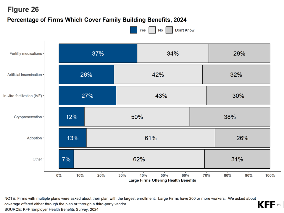 此外,越来越多企业关注员工健康筛查与生育支持。约40%的大型公司提供生育治疗(IVF)或代孕相关福利,比五年前增长近一倍。员工心理健康服务覆盖率超过80%,但实际使用率仍不足一半。