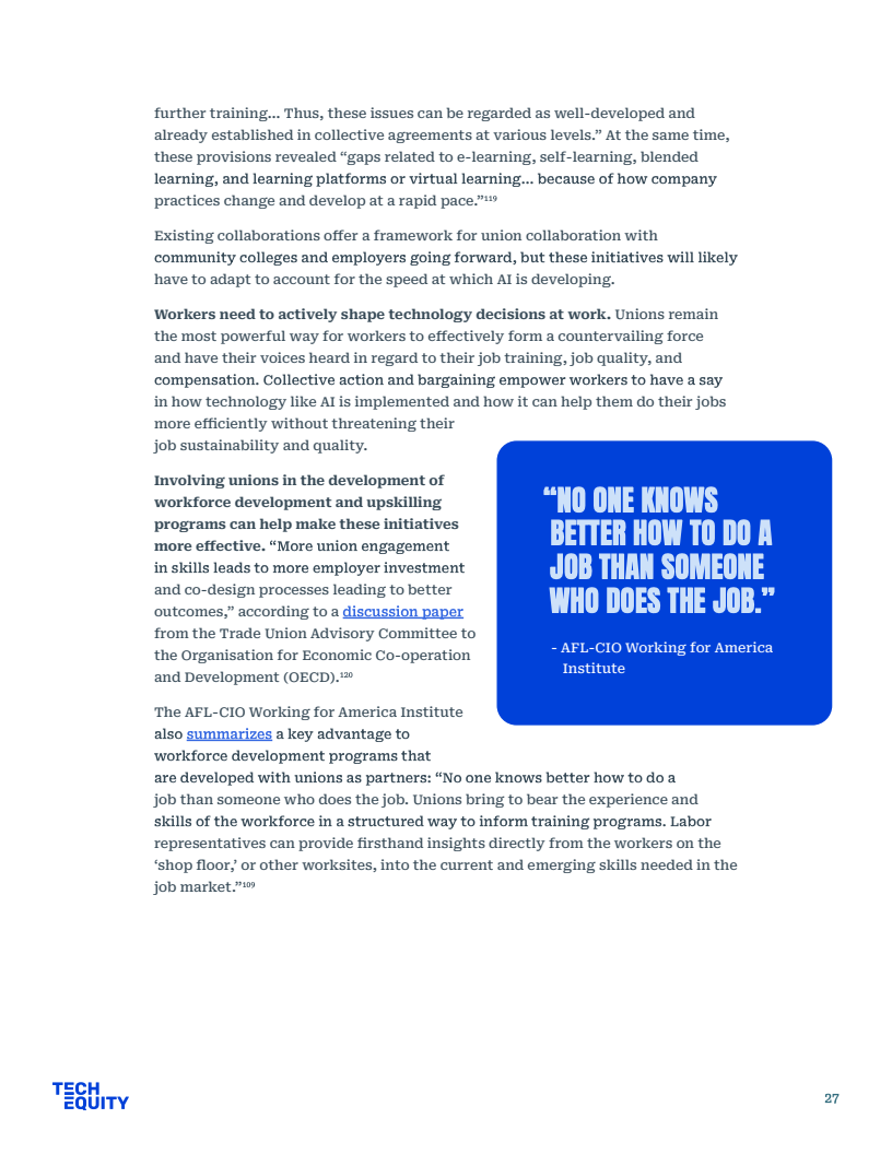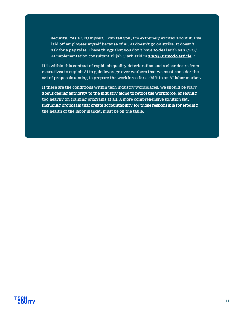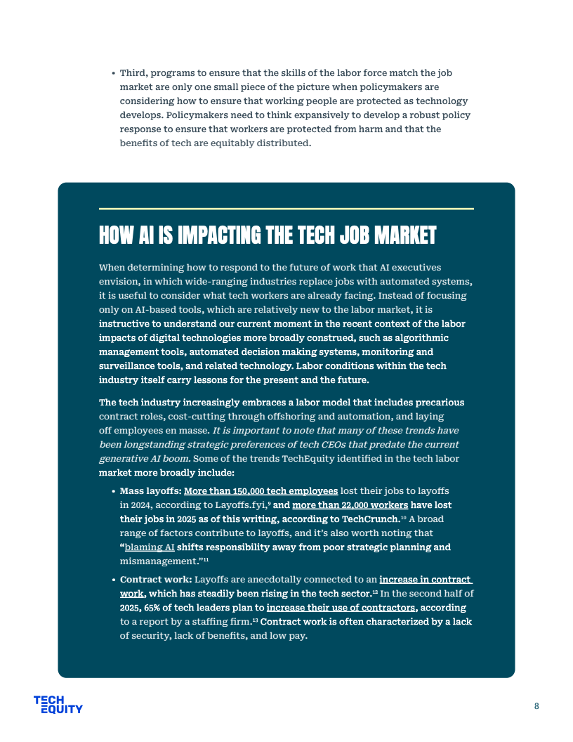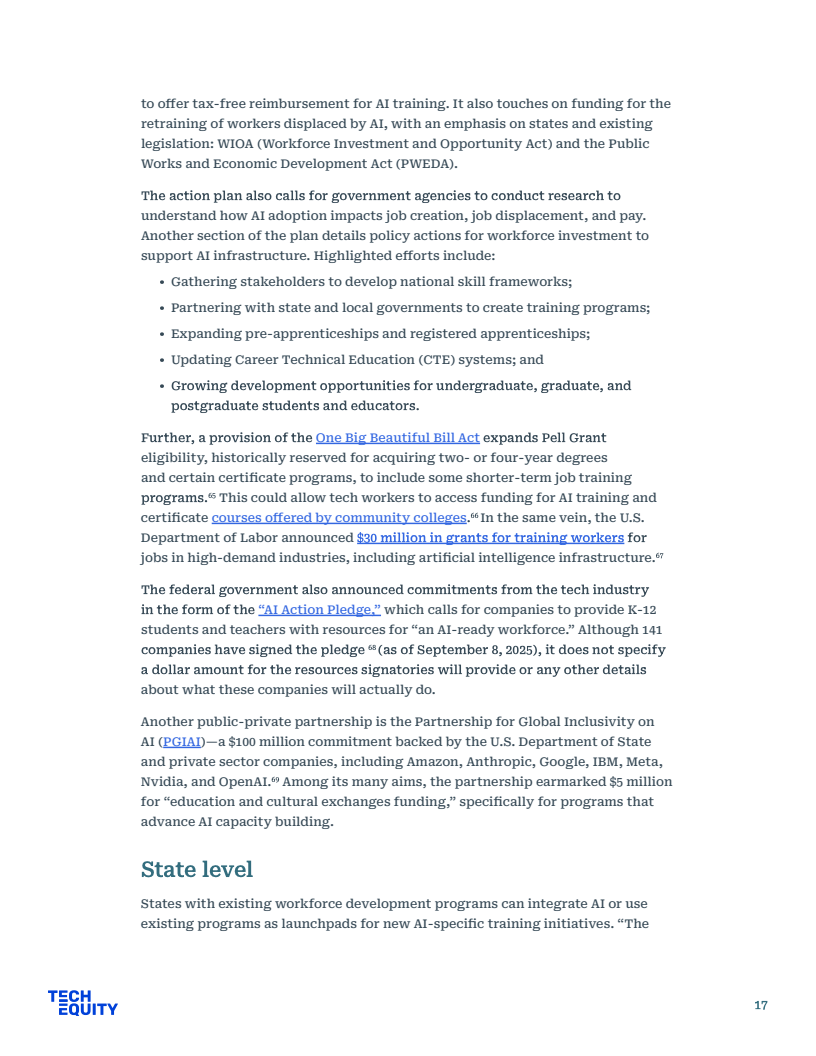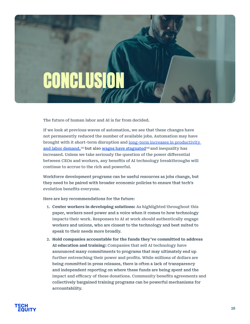 公共政策方面,劳工部虽宣布3000万美元拨款,但核心法案WIOA仍面临4亿至10亿美元的资金缺口,难以支撑长期的经济流动性。相比之下,工会主导的集体谈判更具实效,如WGA与SAG-AFTRA成功确立了AI使用同意权与赔偿机制,有效平衡了劳资关系。唯有建立严格的企业问责制与社区福利协议,才能确保巨额培训资金真正转化为劳动者的技能资产。