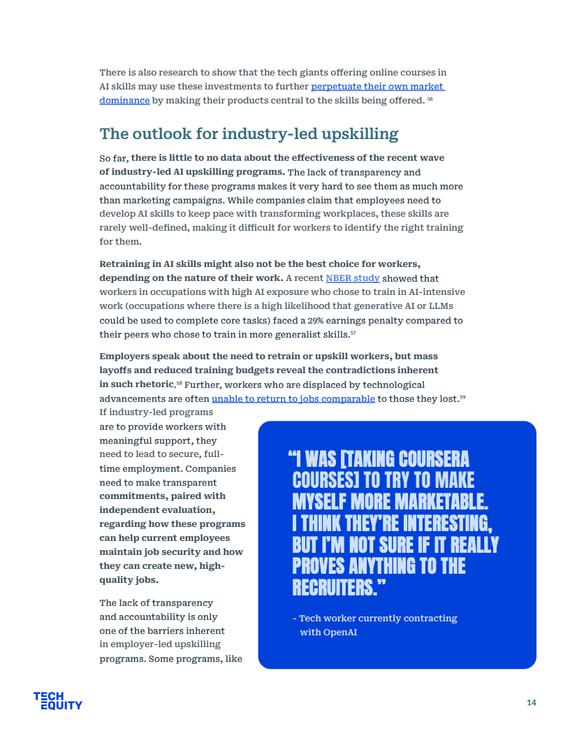 尽管Cisco承诺2032年前培训2500万人,Amazon与IBM亦分别制定了200万人次的培训计划,但实际成效缺乏数据透明度。数据显示,部分编程训练营毕业生的全职就业率已从83%暴跌至37%,且缺乏针对性的培训恐难以适应市场需求。处于高AI暴露职业的劳动者在转型后,甚至面临29%的“收入惩罚”而非薪资增长,这表明单纯依赖企业主导的培训存在明显的边际递减效应。