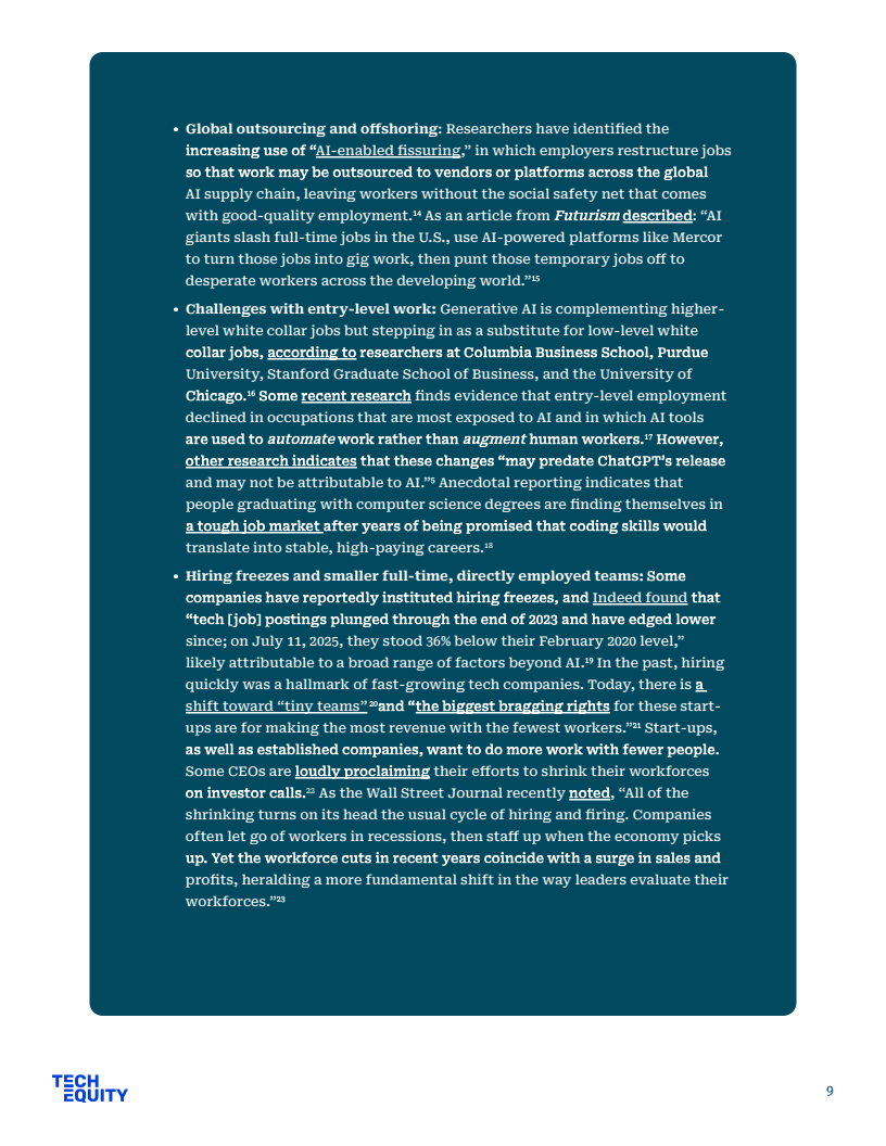 2024年科技行业裁员规模已超15万人,2025年初至今新增失业人数逾2.2万人,数据表明“AI优先”战略正引发就业市场剧烈震荡。Anthropic首席执行官预测,未来一至五年内人工智能或将替代半数初级白领岗位,导致入门级编码等工作机会急剧萎缩。企业正利用技术将全职岗位转化为不稳定的合同工,这种就业结构的裂变使得劳动者面临严峻的职业安全挑战。
