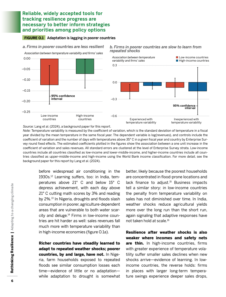 基础设施薄弱进一步加深冲击。在尼日利亚,农户遭遇旱涝时的消费降幅在贫困地区尤为显著,企业面对温度波动的销售损失亦大于高收入国家。基础设施的滞后不仅放大灾害损失,也阻碍市场、金融与服务网络的快速恢复。