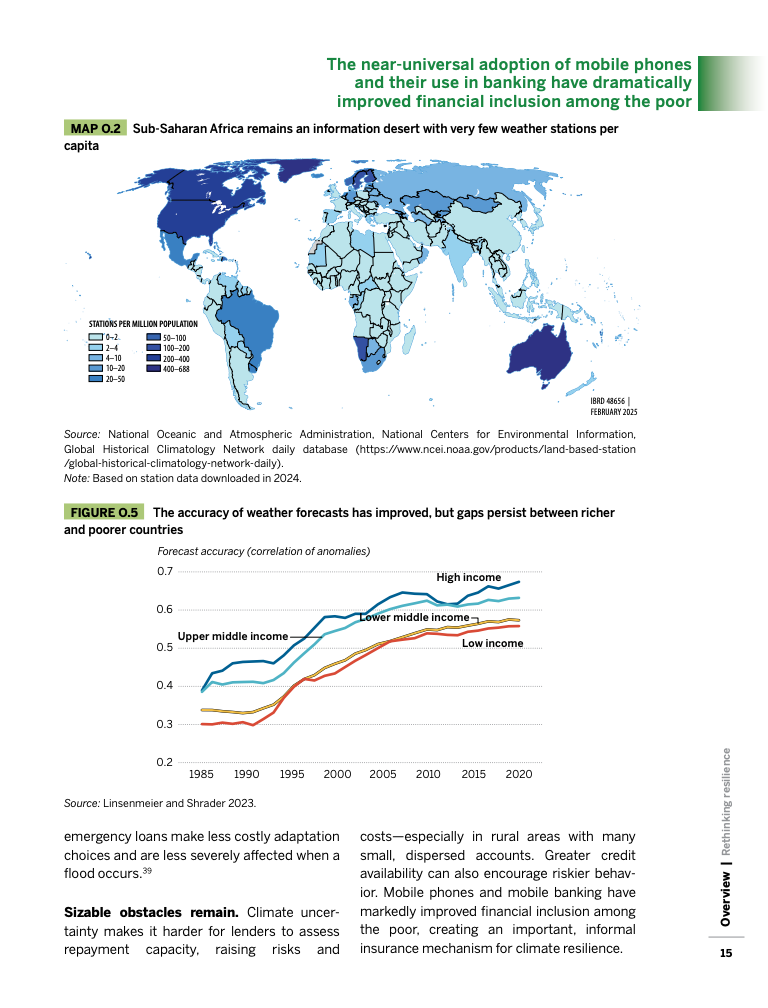 信息缺口进一步放大了脆弱性。撒哈拉以南非洲平均每百万人仅有1.6个气象站,而美国为217个,预测误差导致决策者难以把不确定性转化为可管理风险。研究表明,一天的提前预警即可减少约三分之一的潜在损失,且早期预警系统的成本收益比接近9:1,属于最具回报的公共投资之一。