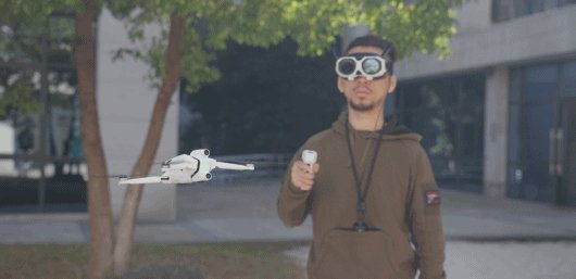 说到 FPV ,其实通过影翎的头显,你也可能会联想到穿越机,但它的操作比穿越机要简单得多,因为穿越机只是把无人机的屏幕图传变成了头显图传,具体的操作还是要靠摇杆,但是影翎的操作方式是。。。