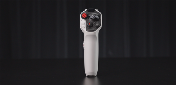 操控它的单手手柄则有点儿像开飞机,你的所有操作都用一只手来完成,它也支持体感操控,再结合 360 度全景画面,你就可以像玩游戏一样来操作它,指哪打哪,这也是它和传统无人机、穿越机靠摇杆和机头屏幕图传操作最大的不同之一。