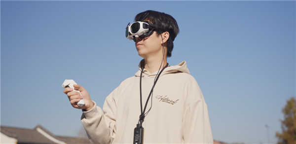 你说它是穿越机,它确实有类似的手柄和飞行眼镜,但它却又不需要那么高的上手门槛就可以拍出媲美穿越机的画面。