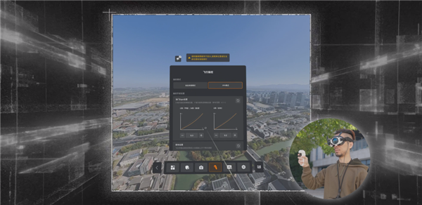 而航迹规划可能和你想得不太一样,它不仅仅是规划好你想让飞机怎么飞,而且在无人机自动巡航之后,你就可以把飞行眼镜给你的朋友或者家人,哪怕它们根本不懂无人机,也可以体验一段专属的 360 度全景飞行旅程。