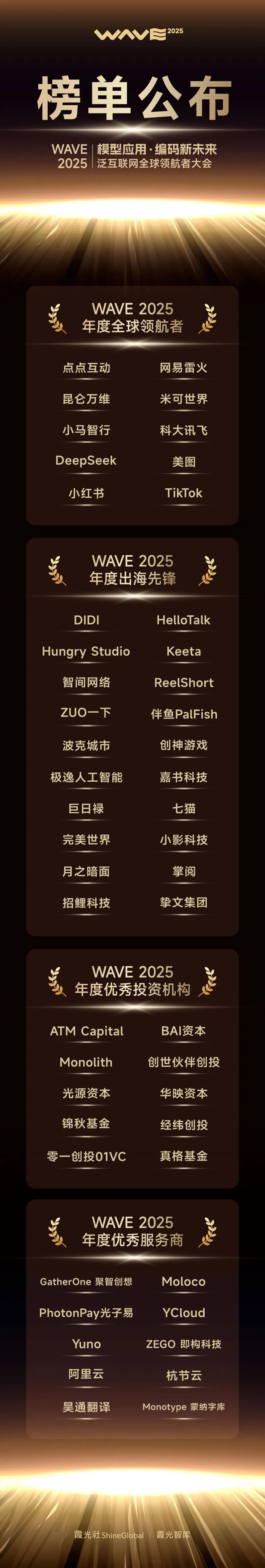 11 月 20 日,霞光社&霞光智库联合阿里云发布 WAVE 2025 泛互联网全球领航者年度榜单,真格基金上榜「WAVE 2025 年度优秀投资机构」。