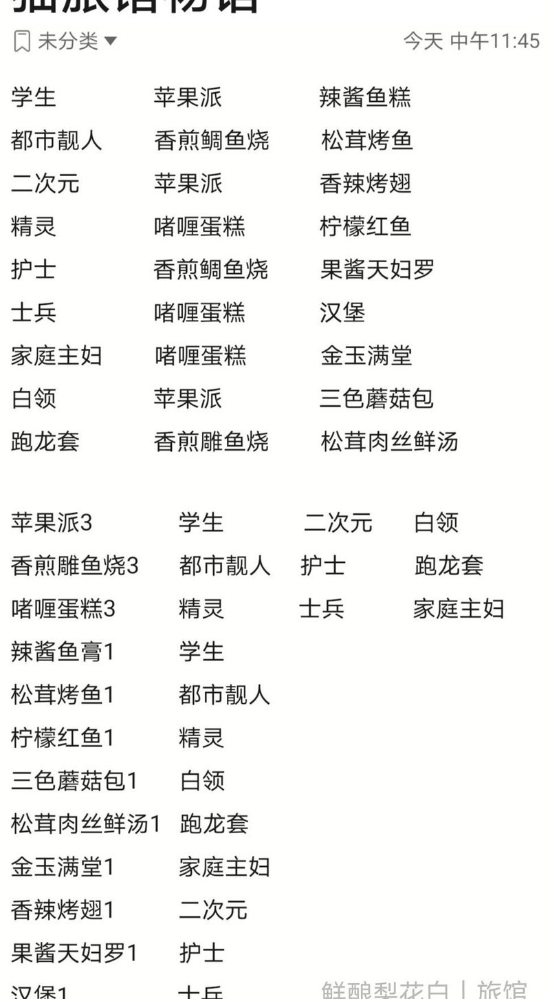 顾客最喜爱的前三道菜品分别是苹果派d1、鲷鱼烧c1和啫喱蛋糕b1,已覆盖所有客群。苹果派满级收益为15,当前12档完全够用,资源充裕时再升级即可;重点应关注鲷鱼烧,其10级收益达16。农场四个区域等级建议优先按开放顺序提升至5444,以确保满足啫喱蛋糕的销售需求,避免因随机出现精灵导致经营中断。