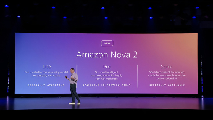 Agent 行动力升级的背后,是模型「大脑」的升级。支撑各种 Agent 的 Amazon Nova 模型家族全面升级至第二代,包含主打高性价比的 Amazon Nova 2 Lite、亚马逊最强智能模型 Amazon Nova2 Pro、专注类人语音对话的 Amazon Nova 2 Sonic,以及行业首个真正统一的多模态模型 Amazon Nova 2 Omni。亚马逊云科技坚持「没有一个模型能统治一切」的哲学,多样化的模型家族为的是让 Agent 更听话、更能干活。