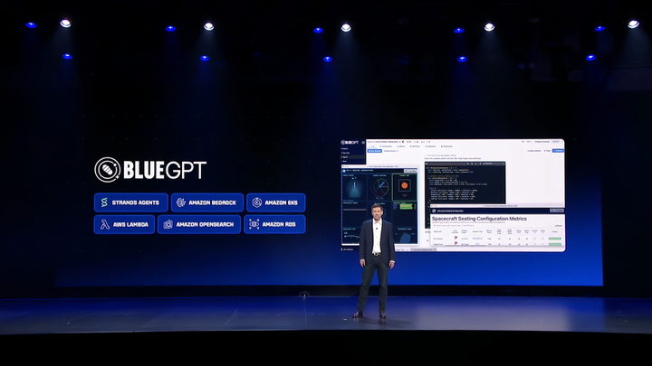 和亚马逊关系紧密的蓝色起源(Blue Origin),更是大胆地将这套流程引入到了航空系统设计:从细化需求、物料沟通到更高技术力的系统架构和物理仿真,蓝色起源通过内部的 BlueGPT 平台调用了多个 Agent 来支持研发,让总体交付速度提升了 75%。