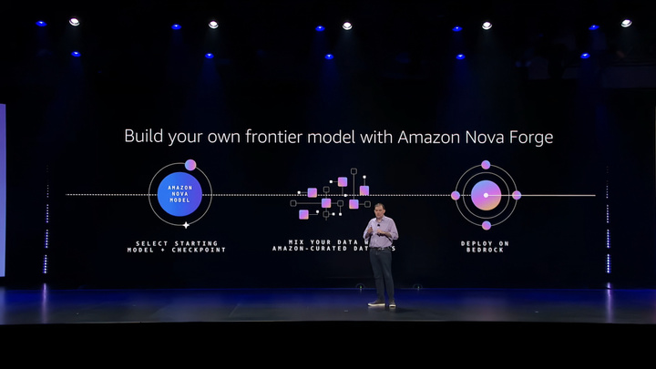 • Frontier Agents 家族登场:推出 Kiro Autonomous Agent、Security Agent 和 DevOps Agent 三款前沿 Agent,将软件开发、安全和运维带入自动化新范式。• 自研芯片再进化:正式推出 Amazon Trainium3 UltraServers,性能提升 4.4 倍。同时预告了下一代性能更强的 Trainium4 芯片。• 自研模型家族全面升级:发布 Amazon Nova 2 模型家族,包含 Lite、Pro、Sonic(语音)、Omni(多模态)四个核心模型,覆盖从轻量到复杂的全场景需求。• Amazon Bedrock 拥抱中国大模型:Amazon Bedrock 平台进一步扩容,首次纳入Kimi、MiniMax、Qwen等多个中国顶尖大模型。• 模型定制化革命:推出 Amazon Nova Forge,首创「开放式训练模型」理念,允许企业将自有数据融入基础模型的预训练阶段,创造深度定制的专属模型。• Agent 行为治理:发布 AgentCore Policy 和 AgentCore Evaluations,用自然语言为 AI 代理设定行为边界,并持续评估其工作质量,解决企业应用 AI 的可信度与可控性难题。• 云边界的消融:发布「Amazon AI Factories」,将亚马逊云科技的 AI 基础设施直接部署到客户自己的数据中心。