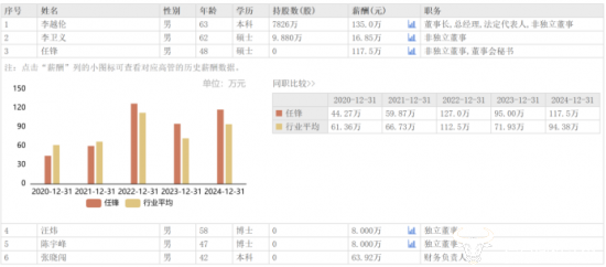 薪酬方面,根据2024年财报显示,任锋去年的薪酬为117.5万元,在公司高管团队中仅次于董事长李越伦,位列第二。