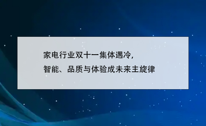 总的来说,虽然双11家电行业遇冷,但是在“国补”与促销的加持下,家电行业已经成功从促销量向提升体验方向转变。未来的家电行业依然在品质化迭代的形势下,依然充满新的增长点。