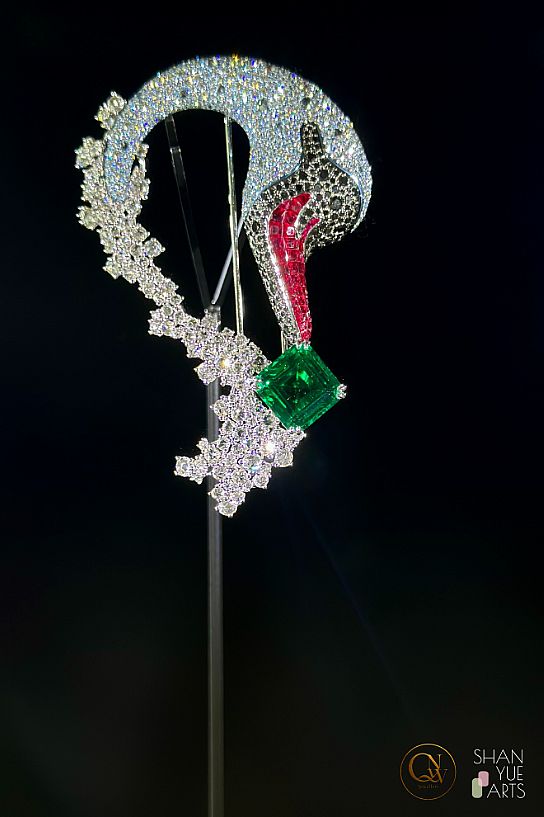 天鹅轻吻湖面造型胸针:14.87克拉赞比亚祖母绿配镶4.91克拉天然红宝石及16.01克拉钻石