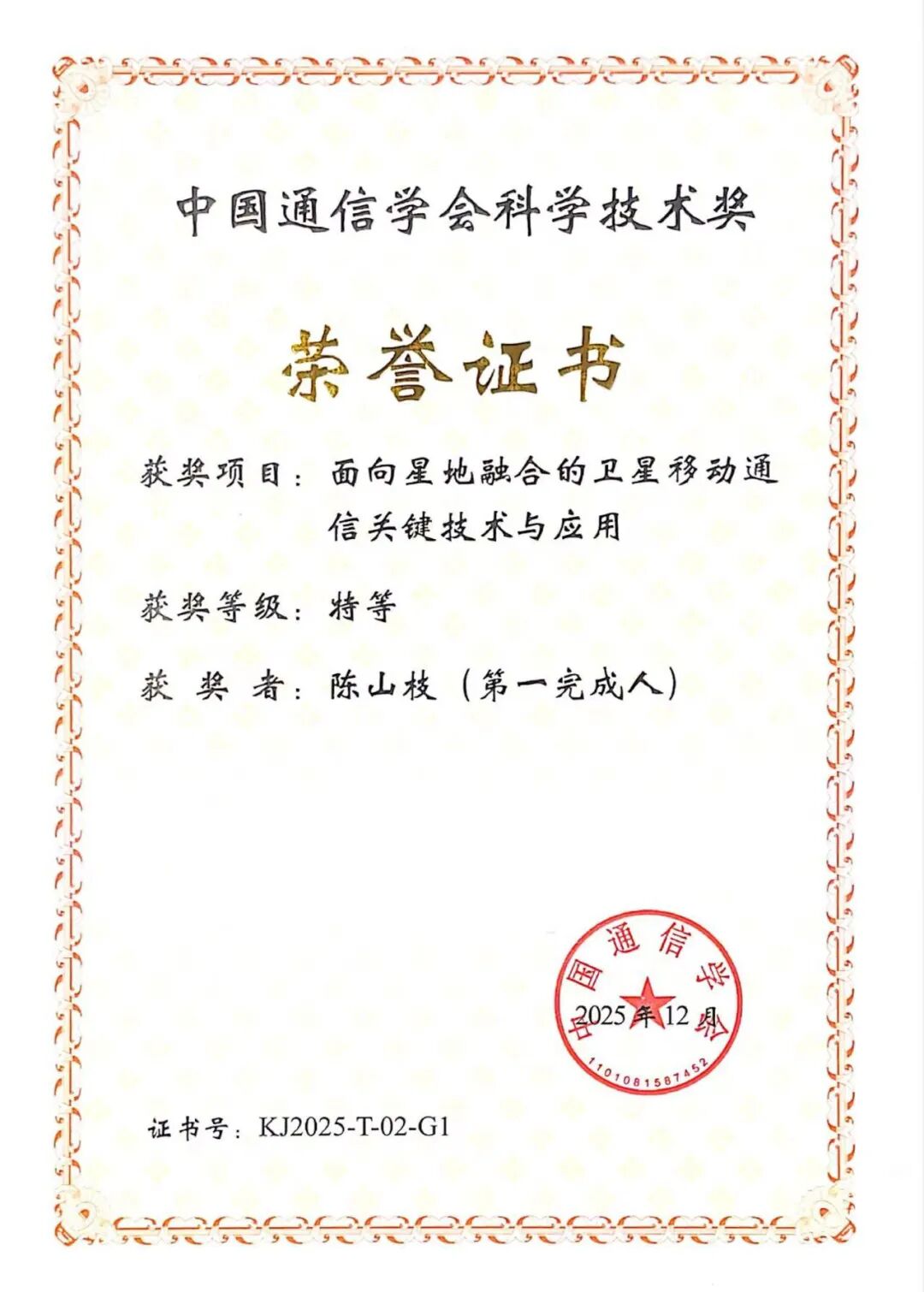其中 ,由中国信科集团陈山枝团队领衔,联合中信科移动、大唐移动、中国信通院、宸芯科技、北京邮电大学共同攻关的“面向星地融合的卫星移动通信关键技术与应用”项目在156项获奖项目中脱颖而出,荣膺2025年度中国通信学会科学技术奖特等奖。