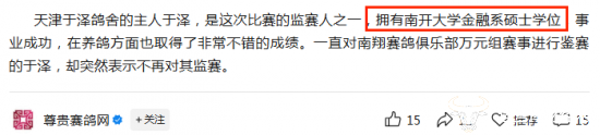 在2017年一场赛事中,其还因无法调停选手赛鸽是否进行50公里放飞验棚,而退出监赛,并表示“由于自己的刚正不阿,得罪了不少鸽友”。不知在金融领域,于泽的工作状态是否会和养鸽子一样的刚正不阿。