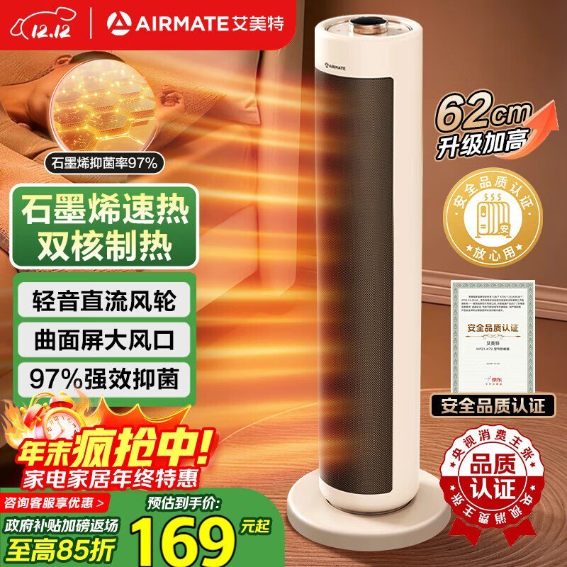艾美特K72暖风机促销!到手仅210.59元全屋升温