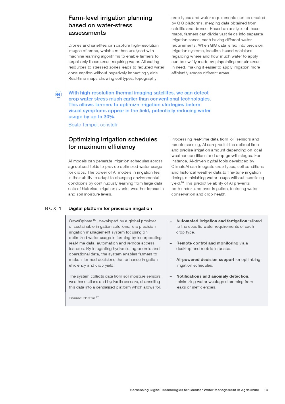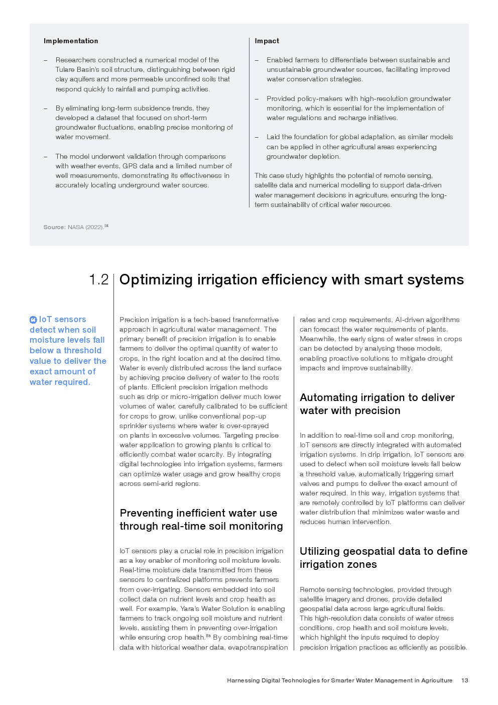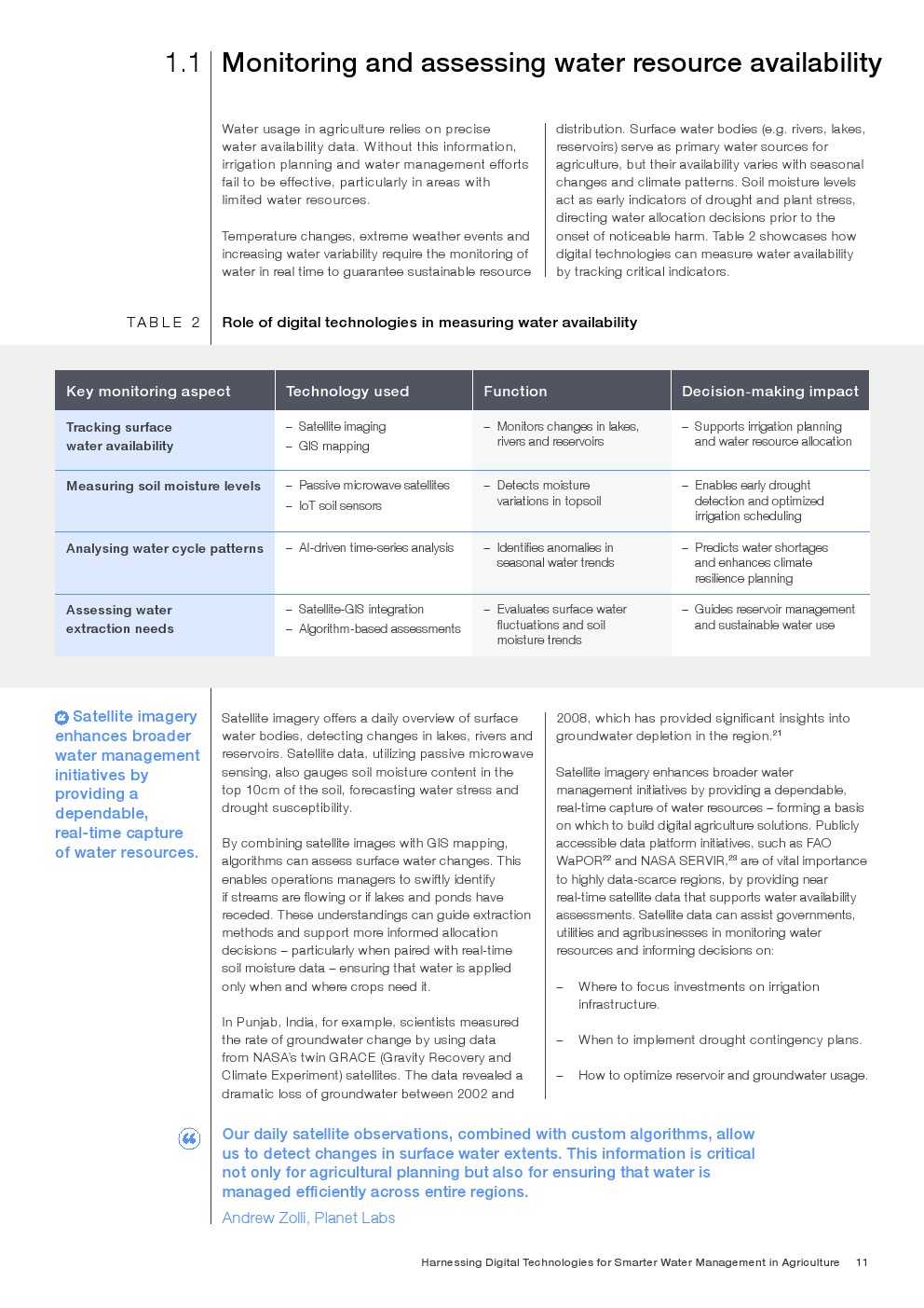 监测和评估水资源可用性:卫星图像、物联网传感器和人工智能驱动的分析技术可以实时监测土壤湿度、地下水位和干旱风险。