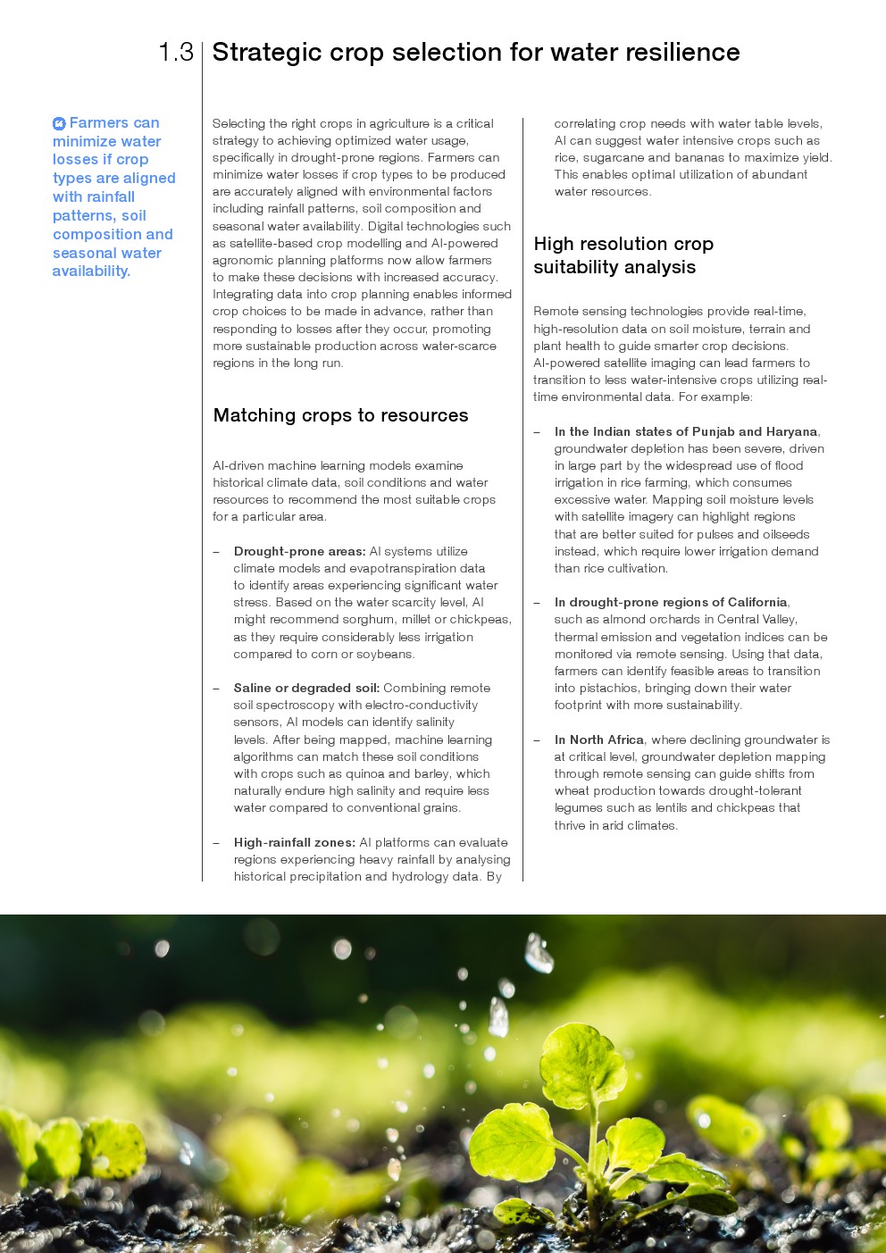 战略性作物规划:人工智能卫星成像可以分析气候、土壤和水文数据,将合适的作物与可用水量相匹配。农民可以通过使作物类型与供水水平相匹配来战略性地选择作物。