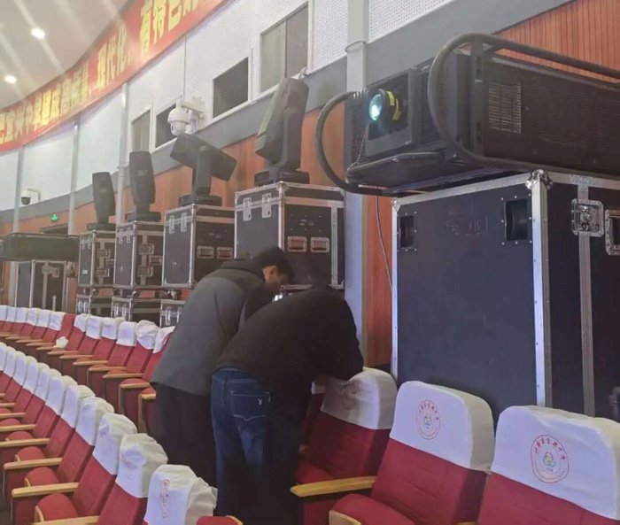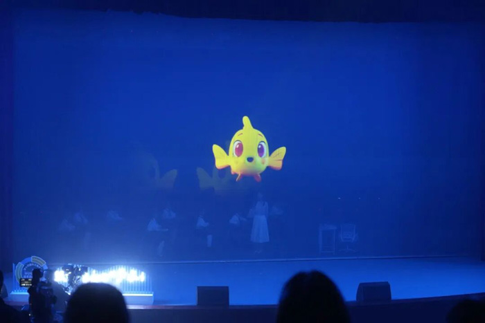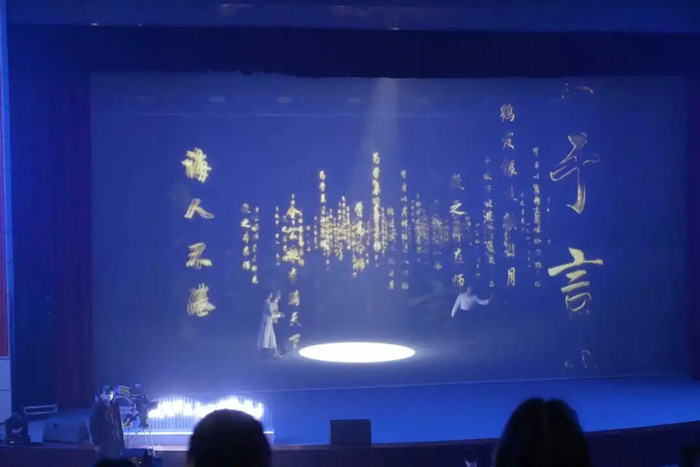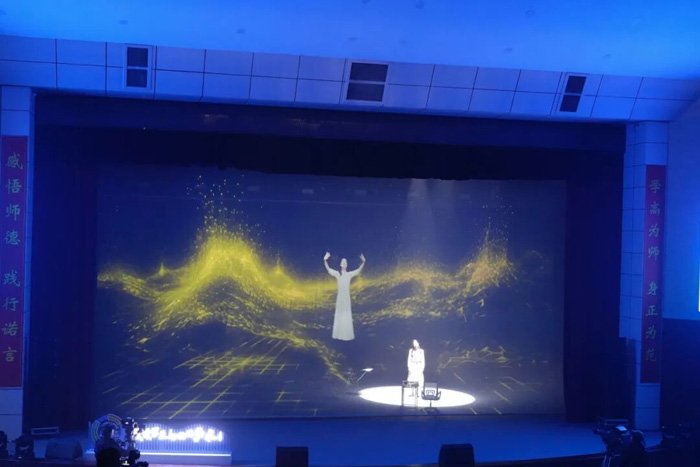 无锡羿飞教育此次提供的全息解决方案,采用行业领先的高流明激光投影机,亮度高达30000流明以上,确保影像在复杂光照环境下依旧清晰绚丽。沙幕系统则选用高透光纳米材质,透光率超90%,配合精准的光学校准技术,使全息影像悬浮于空中,无介质遮挡,真正实现“裸眼3D”效果。舞台场景切换流畅自然,为《心壶》中细腻的情感转折与意境转换提供了坚实技术支撑。